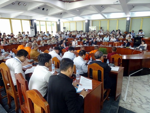 柬埔寨参议院、发展理事会(CDC)、商务部、财政部、外交与国际事务部、公共工程和交通部、王家研究院、经济社会文化委员会、最高国家经济理事会、亚欧大学、孔子学院参议院汉语中心部分学员、中国商会代表、中资企业代表、孔子学院中方院长帅式毅及汉语教师志愿者约200余人出席了座谈会。