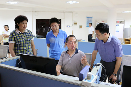 甘校长首先来到信息技术中心远程网录取现场,向参与远程网录取的同志们道一声,大家辛苦了。甘校长指出,招生工作政策性强,要严格执行相关政策,切实为考生和家长着想,只有保证入口兴旺,学校的发展才更有希望。招生与就业处处长肖国丰向甘校长、吴副校长详细介绍了近期学校招生的基本情况。甘校长边听边查看,并饶有兴致地坐到电脑前仔细询问,鼓励大家要继续发扬吃苦耐劳的精神,持之以恒地做好招生工作,同时要求招就处要切实做好各项保障工作,为全体工作人员排忧解难。