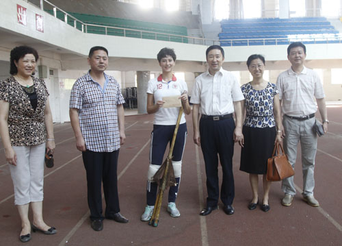 在永利yl23411集团官网田径馆,黄大明同正在训练的运动员、教练员亲切交流,了解了他们的训练情况,观看了他们的训练,祝福他们取得好成绩。