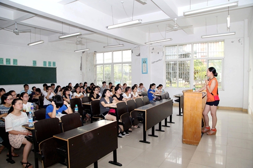 甘校长、纪副校长来到文友楼检查第一课情况。检查中,当看到文传学院多功能教室前半部分用来上课,后半部分用作形体训练时,甘校长称赞文传学院领导励精图治、善于琢磨,在申报专业工作方面开拓创新,为学院发展拓宽道路。当看到会计学院、外语学院为教师配备扩音器,教学效果良好时,甘校长认为这种做法值得提倡。甘校长还对会计学院学生第一课的良好精神面貌提出表扬。看到桌面上摆放着刚刚发放的新书时,甘校长叮嘱工作人员课后要提醒同学将包装皮清理干净,叮嘱教务处,在合理分配多媒体教室资源方面再多做些工作。