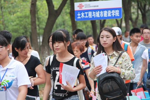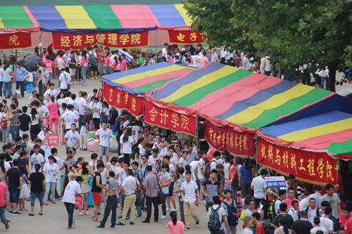 为方便提前来校的新生报到,学校的迎新工作9月3日下午就已经开始。9月4日清晨迎新工作全面展开。5点30分,学校13辆迎新校车分赴九江火车站、庐山火车站和九江长途汽车站,迎接新同学和家长到各自校区报到。当校车驶入报到现场时,早已等候在这里的迎新工作人员和志愿者高举着各个学院的引导牌在车门处热情地招呼着自己学院的学弟、学妹,带领他们到学院接待点存放行李、办理各项报到手续。