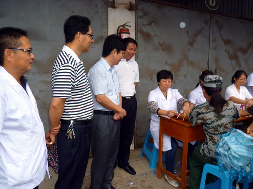 王副校长要求校医院一是要不断提高服务意识,要尽可能地为师生提供令人满意的服务。二是要认真做好新同学体检工作,要注意维持好体检现场的秩序,确保新生体检安全、有序、高效。三是在做好新生体检工作的同时做好正常的医疗门诊工作及军训现场医疗保障工作。