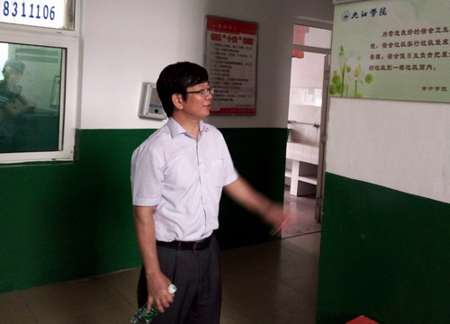 为检查前期学生宿舍垃圾袋装化落实效果,进一步加强学生宿舍管理,营造平安和谐的校园氛围,9月14日上午,王万山副校长在学生处、学生宿管中心负责同志及主校区各二级学院党委书记的陪同下,对主校区学生宿舍安全卫生进行检查。