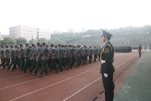 大会会场雄伟壮观,鲜艳的红旗在队前飘扬,雄壮的军歌在空中回荡。“军纪如铁,意志如钢,严格要求,勇争第一”、“激情飞扬,超越梦想、挑战极限、铸就辉煌”等大幅标语悬挂在田径运动场周围,94个排列整齐、精神抖擞的学生方队,迎着朝阳、激情满怀地等待着校领导和九江军分区首长的检阅。校领导甘筱青、吴桃娥、纪岗昌、王万山、陶春元、杨焱林,魏立平、杨耀防、九江军分区政委汪开华大校、九江军分区参谋长封志宏大校、空军场站参谋长张武中校及学校各二级学院党政负责人和有关部门负责人出席了大会。副校长王万山主持了2015级新生军训表彰大会。