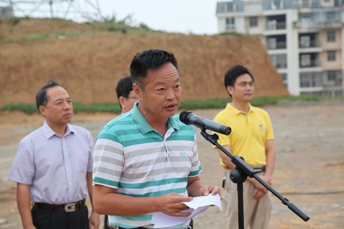 当人们来到项目所在地,可看到开工奠基仪式现场竖着五个大牌子:一个是开工奠基仪式背景墙,其它四个是介绍该项目的效果示意图。背景墙的正前方是扎着大红绸子奠基石,其四周是十几把插在沙堆上的扎着红绸子的铁锹,项目开工奠基仪式在鞭炮声中拉开序幕。