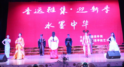 9月29日晚,外国语学院香远雅集“水墨中华”2015级迎新晚会在大礼堂隆重举行。副校长王万山、校团委负责人和外国语学院党政领导及师生代表千余人观看了本次演出。