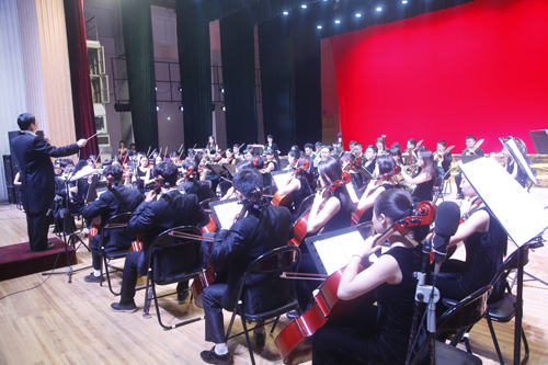 10月10日晚的九江学院大礼堂,座无虚席,乐音绕堂,校长甘筱青,副校长王万山,杨耀防,江西师范大学音乐学院党委书记黄焰烘与永利yl23411集团官网千余名师生一起,共同欣赏了一台高水平的音乐盛宴。当晚,由江西师范大学交响乐团承担的,以“中国梦之韵”为主题的2015年江西省高雅艺术进校园活动专场音乐会在这里倾情上演。