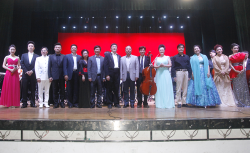 演出结束后,观看演出的甘筱青、王万山、杨耀防等校领导与江西师范大学音乐学院党委书记黄焰烘共同走上舞台,慰问全体演职人员,感谢他们的辛勤演出,祝贺演出取得圆满成功,并与他们合影留念。