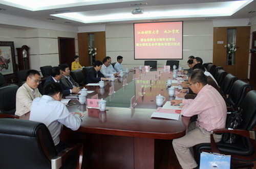 交流会上,两校举行了联合培养硕士研究生合作意向书签字仪式。仪式结束后,在江西财经大学副校长吴照云的陪同下,甘校长、杨副校长还考察了江西财经大学的省级2011协同创新中心,并表示要加强两校间协同创新中心的交流与合作,共同提高科研成果水平和影响力。两校各专业硕士学科点之间还分别从师资队伍建设、硕导聘任、学科建设等多个方面进行了广泛的交流。