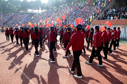 甘校长在致辞中希望全体运动员尊重裁判,尊重对手,顽强拼搏,奋勇争先,赛出风格;希望全体裁判员,工作人员坚守岗位,严守流程,热情工作,公正裁判;希望同学们讲文明,守纪律,服从管理。甘校长最后预祝第十四届校运会取得圆满成功。