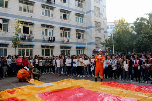 为进一步做好学生安全工作,切实提高同学们的安全防范意识和自救自护能力,10月14日下午4点,校保卫处联合庐山区消防中队、外国语学院在学生宿舍区举行了安防知识培训暨防火、防震等突发事件应急处置演练。保卫处处长张晓明、副处长吴新刚,庐山区消防中队曹指导员对此次演练过程进行了指导。外国语学院党委书记杨杰、副书记彭晓出席此次演练活动。学生科、团委负责人、全体辅导员、学生干部及2015级各班学生代表400余人参加了演练。