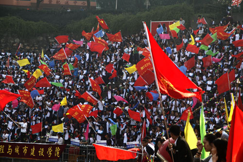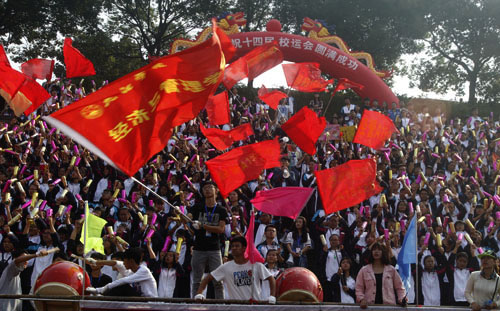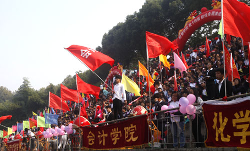 经过两天半紧张、激烈、精彩的角逐,在圆满完成了全部比赛项目后,10月17日上午,九江学院第十四届田径运动会在此起彼伏的欢腾声、呐喊声、助威声中胜利闭幕。在家校领导甘筱青、吴桃娥、纪岗昌、王万山、陶春元、杨焱林、魏立平、杨耀防出席了闭幕式并为获得精神文明奖、团体总分奖的单位颁奖。闭幕式由副校长王万山主持。