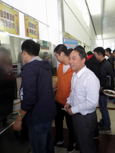 10月20日中午,甘校长来到主校区学生二食堂,深入高峰期就餐同学中间边查、边看、边问,校长重点关注学生午间高峰时段食堂供应是否充足,就餐秩序是否良好,菜品花色价位是否合理等。