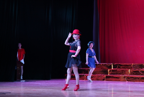 汇演结束后,吴桃娥和相关部门负责同志走上台慰问演职人员,并合影留念。