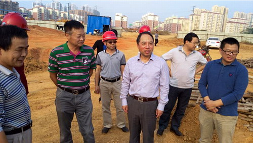 10月23日下午,校长甘筱青在副校长杨焱林陪同下,先后来到两南山和艺术学院新建工程施工现场,检查工程进展情况,现场办公指导工作。