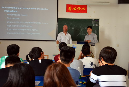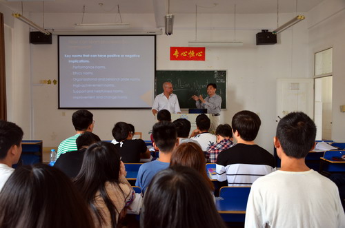 10月26日,杨耀防副校长一行前往经管学院听取了外籍教师Daniel讲授的《人力资源管理》课程,国际交流学院夏修龙院长,经管学院院长潘旭华、党委书记花金龙等一同听课。