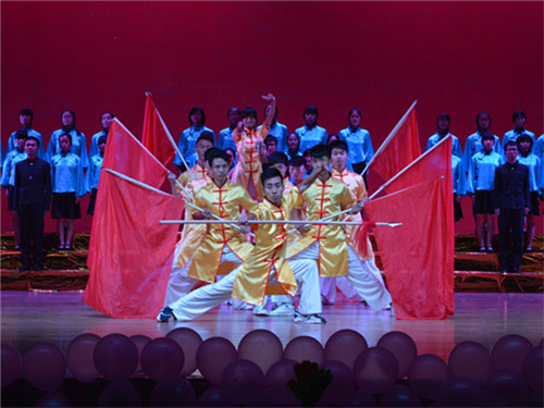 “美哉,我少年中国,与天不老!壮哉,我中国少年,与国无疆!”,慷慨激昂的国学朗诵《少年中国说》与传统武术的有机结合,直接将现场气氛推向高潮,激发了同学们对学习国学的热情,有助于其国学素养的培养。