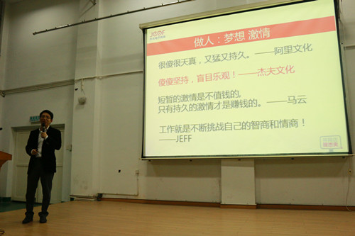 聘任仪式之后,杭州葫芦娃集团董事长唐正荣校友和杭州杰夫电子商务有限公司董事长姜洪峰以《我的创业之路》为题与同学们分享了他们的创业经历。他们以自己的亲生经历为同学们带来了一场情真意切、幽默风趣、睿智严谨、深入浅出的精彩讲座。在分享自己工作经验和人生感悟的同时他们还不忘勉励同学们要有梦想和激情,要讲诚信,要学会感恩,要学会团队合作,要学会敬业尽责,要学会创新求变,多思考多积累,努力将知识内化为智慧,实现自身价值观的提升。两位客座教授精彩、睿智的语言,不时赢得阵阵掌声,使同学们了解了社会实际,开阔了创业视野,获得了思想启迪。