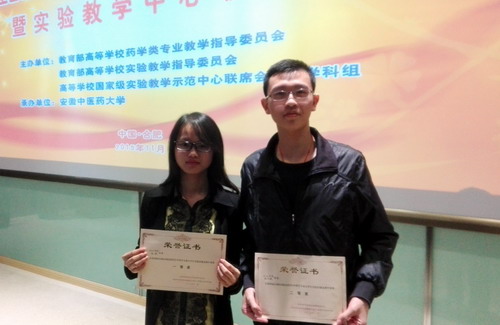 永利yl23411集团官网药学与生命科学学院2名同学参加了本次实验技能竞赛。经过紧张的笔试和实验操作,2012级药物制剂专业林珠同学获得药学组一等奖,2013级药学专业赖治臻同学获得中药学组二等奖。自9月初启动本次竞赛以来,药生学院领导高度重视,精心组织,安排药学教研室余敬谋博士担任药学实验竞赛指导教师,中药学教研室曲伟红博士担任中药学实验竞赛指导教师,学生科副科长过七根认真组织选拔参赛学生,2位指导教师对学生进行了“一对一”的实验技能训练。11月5日晚,副院长张小谷、院长助理吴家忠参加了第四届全国药学/中药学实验教学中心联席会,会议总结了药学/中药学国家实验教学中心2015年的工作,并就进一步组织开展全国药学类专业教师创新性实验改革、学生创新创业竞赛和实验技能竞赛等议题进行了讨论。