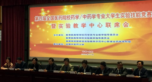 11月5-7日,由教育部高等学校药学类专业教学指导委员会、教育部高等学校实验教学指导委员会、高等学校国家级实验教学示范中心联席会药学学科组共同主办,安徽中医药大学承办的“第四届全国医药院校药学/中药学专业大学生实验技能竞赛暨全国药学/中药学实验教学中心联席会”在合肥市举行。中国药科大学、沈阳药科大学、北京大学、复旦大学、浙江大学、中山大学等来自全国62所院校医药类专业300多名参赛选手和指导老师参加了此次竞赛及会议。