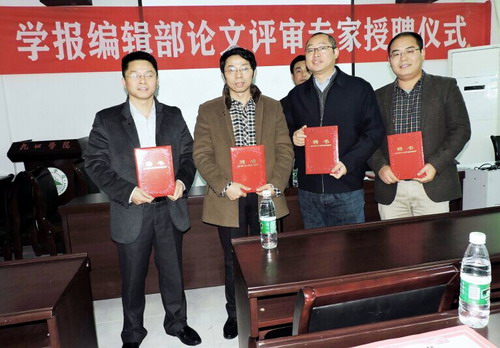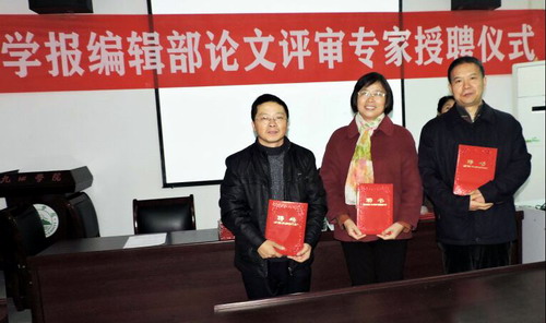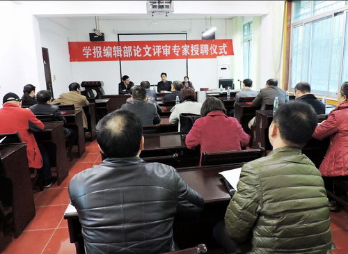 11月12日下午,学报编辑部在二号行政楼4楼会议室举行论文审稿专家授聘仪式。副校长杨耀防到会讲话并给受聘专家颁发聘书。仪式由学报编辑部主任秦川主持,学报副主任梁光霞宣读受聘专家名单,20多名受聘专家覆盖全校各学科。