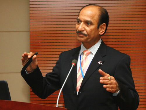 杨耀防在开幕式上致辞。他说,在这霜林染醉、枫叶流丹的深秋时节,我们相聚在环境优美的九江学院校园,共同出席2015年肿瘤基因组学和生物学国际学术研讨会。他介绍了出席本次研讨会的专家和嘉宾,并代表学校四万名师生,向他们的到来表示热烈的欢迎。同时向为本次研讨会顺利召开给予支持的全球肿瘤基因组联盟和癌转译研究组织致以诚挚的谢意。接着,他简要介绍了承办本次研讨会的永利yl23411集团官网和仁信肿瘤医学集团的基本情况。杨耀防指出,肿瘤是全世界关注度最高的医学论题之一,研究肿瘤、攻关克难、拯救生命是全体肿瘤医学界的光荣梦想和崇高使命。我们组织召开这次国际学术研讨会,旨在增强国内外医学界在肿瘤、基因组学、生物学等领域的合作与交流,探索和挑战科学前沿问题,进一步提升中国在相关研究领域的学术水平和影响力。杨耀防指出,莅临本次学术研讨会的国内外专家们都具备深厚的学术功底和丰富的临床经验及研究成果。召开这样一次高水平的学术研讨会,对于永利yl23411集团官网广大师生是一次学习和了解肿瘤医学及生物学学术研究新进展、开拓国际视野的极佳机会。杨耀防最后希望与会嘉宾充分利用研讨会这个平台,开展深入交流和讨论,充分整合国际肿瘤基因组学和生物学研究方面的前沿成果,共同推动肿瘤基因和生物学专业学科的蓬勃发展。预祝2015年肿瘤基因组学和生物学国际学术研讨会圆满成功。祝各位专家和嘉宾身体健康、万事如意。