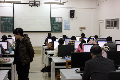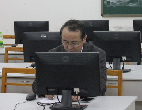 在文理实验楼4楼经管学院实验室,陶副校长现场听取了李同芳老师指导的外语A1283班《进出口业务单证实训》课程,陶副校长认真听课、记录,并细致地观察了教师的实训指导全过程。随后,陶副校长来到会计学院实验室,实地查看了实验室状况,分别听取、观摩了龙飞老师、罗贤惠老师讲授的《证券投资》和《ERP会计实训》课程。