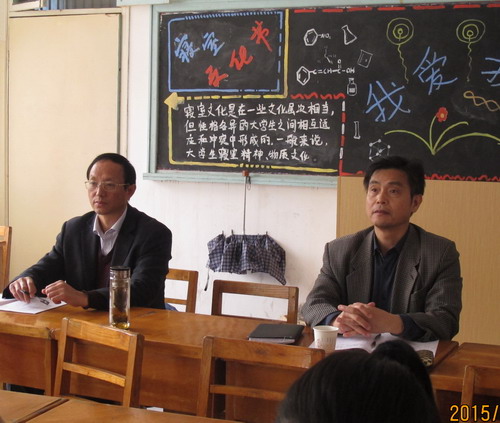 课后,杨副校长刘康强老师进行了交流,认为刘老师的课讲的很好,专业知识功底扎实,注重循序渐进的教学方法,内容紧扣生活,举例恰当,PPT运用也很合理,但要加强互动,加强启发式的教学。随后,杨副校长听取化环学院院长和书记的工作汇报,对化环学院的工作提出指导性的意见。