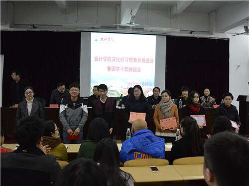 本次会议对会计学院前一阶段深化好习惯教育工作进行了全面的回顾和总结,进一步明确了下一步继续强化好习惯教育的主要工作任务,同时新一届学生干部和老一届学生干部顺利完成了工作交接,将成为学院深化好习惯教育系列活动的排头兵,必将继续推进学院好习惯教育的深入开展,为学校特色教育的深入开展做出贡献!