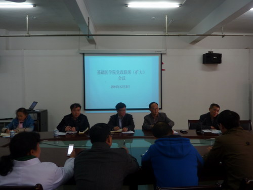 最后,王副校长对基础医学院的下一步工作提出了几点希望:1、基础医学院的党政班子成员平时工作协调的很好,近年来基础医学院的各方面工作都比较顺利,成绩有目共睹,要进一步发扬。2、最近要组织全院教职员工学习和领会郑翔书记关于“教学剩余”的讲话精神,结合临床专业论证的收获和启迪,结合基础医学院的实际,加大高素质人才的引进力度,将教师的精力引导到进修培训和科研实践中去,创造更多的教学剩余价值,为学校的长远发展助力。3、要吸收今天会议上大家提出的合理化的意见建议,将会议讨论的三个议题进一步细化和量化,使这些制度更科学更完善。