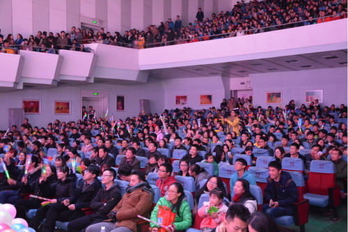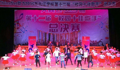 音乐唱响青春,歌声跃动校园。由校团委、校学生会主办的第十二届校园十佳歌手大赛决赛在在大礼堂举行。副校长王万山、中国电信九江分公司总经理杨文清和学生处、团委负责人出席了晚会。各二级学院学生共1100余人观看了比赛。本次决赛评委邀请到了九江广播电视台旅游频道主播雷舒晴、九江市职工合唱团男高音安毅、九江日报长江周刊副总编罗文霞、江西财经学院团委严苏、九江市文化馆卢江老师共同担任。