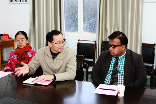 12月11日下午,国际交流处和国际交流学院在竞秀楼314举办孟加拉籍外教Tanveer Raza 离校座谈会,副校长杨耀防出席了座谈会。参加会议的还有国际交流学院院长夏修龙,国际交流处副处长王贤淼,国际交流处和国际交流学院所有教师,以及6名医学外籍教师和部分留学生代表。会议由国际交流学院副院长何广主持。