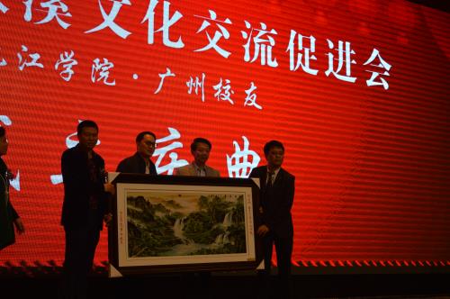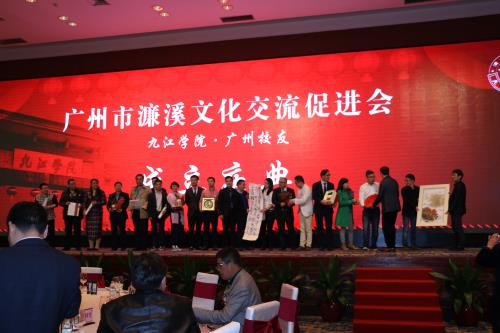 郑翔书记代表学校向广州市濂溪文化交流促进会赠送纪念品,来自北京、东莞、广西、九江、连云港、宁波、南昌、苏州、绍兴、上海、温州、香港、厦门、扬州等地校友会代表也前来祝贺联谊。