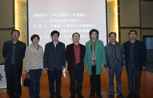 石章强的讲座语言简练,观点新颖。他建议同学们要认清现状——认清自己:平静地面对自己不能改变的事实、勇敢地改变自己能改变的事实,智慧地辨别自己不能改变的事实和能改变的事实;定好目标——选好区域:不要这山看着那山高,融入并进入当地主流圈,生活质量要处于当地中上层;定好目标——摸清老板:老板也是人,当老板不是人的时候,你就把他当成神;摆正心态:阳光心态、空杯心态、换位心态、感恩心态、谋职心态都是可取 的,阴雨心态、满杯心态、自我心态和打工心态、求职心态都是不可取的;做好当下:当下时、当下人、当下事;勤能补拙:做智慧人,行聪明事,内智外聪;锤炼性格:不断完善理性—悟性—佛性—柔性—感性的过程;善于学习:学好借知、学识、习实和道智;做好工作:逼到一条绝路,干出一手绝活和练就一身绝活才能绝处逢生;自我营销:把握住营销和品牌的真谛,营销是为了品牌,品牌是为了不营销。他以丰富的案例,折射出了很多人生哲学。