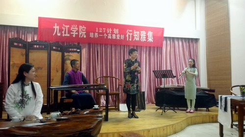 4月6日晚,永利yl23411集团官网127计划第二期行知雅集在旅游管理实验中心茶艺实验室举行,本期雅集以“琴心箫韵暗香来”为主题,融合了古典民族器乐、茶艺、香道、花道、诗词吟诵等诸多高雅元素。副校长王万山、校纪委书记魏立平出席了雅集活动,校团委、旅游学院、理学院、饮食服务中心相关负责人参加了雅集活动,雅集还吸引了九江市文艺界多位贤达和民乐爱好者,与近百位师生一起抚琴吟诗,闻香品茗,共话雅乐。