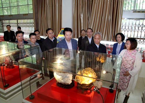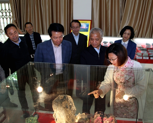 在旅游与国土资源实验室中心的地质陈列室、宝石鉴定实验室,杨伟东详细了解了各类珍稀矿石的性质和特点,如何鉴定宝石等。在区域规划实验室,杨伟东饶有兴趣地询问旅游与国土资源学院专业分布、人才数量和结构、学生实习情况、毕业生就业方向、服务地方经济发展取得的成绩等,对旅游与国土资源学院优良的实验设施给予高度赞赏。