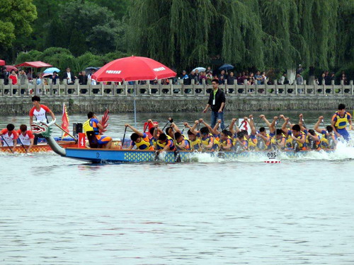 龙舟队是永利yl23411集团官网的传统特色运动队,学校领导以及学院领导都给予很大的支持与帮助,不断改善训练条件和训练待遇,为龙舟队的训练、比赛提供良好的后勤保障。成绩的取得离不开领导的关心,也离不开全体队员、教练员的艰辛付出。在教练员周海浪、贺静、王向棋的带领下,队员们坚持全年训练,特别是水上训练,他们克服高温、雨水天气,坚持每天下水训练,动感的鼓声、整齐的划桨、激情的呐喊,已经成为南门湖上一道美丽的风景线。