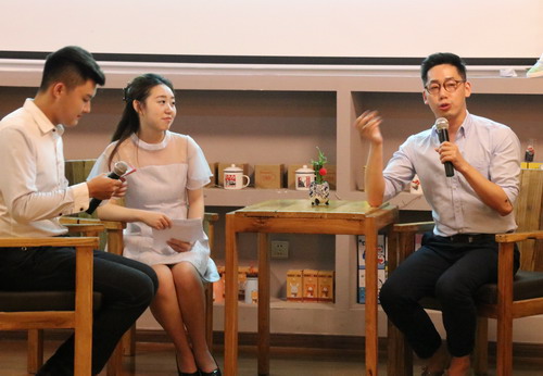 6月12日晚,李丁在厚德楼创客咖啡厅做客《青春友约》栏目。副校长王万山,学生处长刘平,招生就业处处长肖国丰,机械与材料工程学院党委副书记陈胜才,校团委书记闫来英、副书记赵宇剑等领导出席了活动。此次活动还吸引了学校各类语言类学生社团爱好者们的到来。