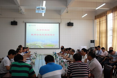 为进一步贯彻落实学校“扩大、做实、丰富、升级”大学科技园建设发展方针,6月14日下午,学校在大学科技园会议室召开了大学科技园教师企业发展推进会。副校长纪岗昌出席会议并讲话。相关二级学院院长代表、科研副院长及全体教师企业法人出席了会议。会议由科研处处长王侃民主持。