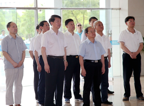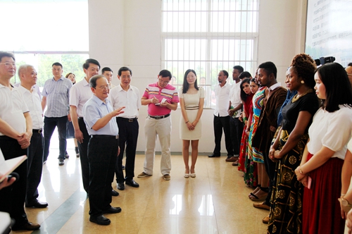 六月的九江学院校园,风轻云淡,鲜花盛开,生机盎然。6月22日下午,雨过天晴,阳光明媚,江西省委副书记、省长鹿心社莅临九江学院,视察九江学院大学科技园,参观国际合作交流展览,并与学校留学生交流。省政府秘书长、办公厅主任张勇,省商务厅厅长王水平,省政府副秘书长犹㼆,省发改委副主任王前虎,省工信委副主任谢光华,省政府研究室副主任利继忠,九江市委书记杨伟东,九江市市长林彬杨等省市相关领导陪同,学校全体在校校领导参加了活动。