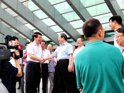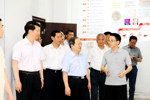 下午二点四十分,鹿心社一行轻车简从,冒着高温抵达永利yl23411集团官网厚德楼,与迎候在此的校领导一一握手问候。在厚德楼大学科技园一楼大厅,鹿心社省长认真观看了永利yl23411集团官网大学科技园宣传片,听取了学校领导的介绍;实地考察了科技园入园企业,与入园企业代表交谈,了解了他们的经营情况。目前,永利yl23411集团官网已经获批省级大学科技园,吸引了68家企业进驻,经营范围涵盖了电子商务与“互联网+”、电子信息技术、智能制造装备开发、新材料开发、精细化学品研发、生物医药研发、文化艺术创意等八大产业;园区面积16927平方米,入驻面积超过10000平方米。