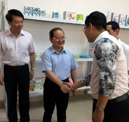 在九江乐智高机器人科技有限公司,鹿心社省长听取了公司负责人张广顺老师的介绍,询问这些机器人产品是不是他们自己动手做的,当听说这些机器人产品都是师生动手做的时,鹿省长称赞这些产品“做得挺好的”。在九江沃策科技有限公司,鹿省长听说这家公司有许多在校学生在创业时,与同学们一一握手,询问他们读几年级,学什么专业。对他们在校时就能结合所学知识进行创业实践表示赞赏。在飞天县域电商研究院,鹿心社省长认真听取了刘鹏飞对企业的介绍,询问他公司运转情况、员工总数和产品类型,听到他在短短八年时间取得那么大的成绩时,赞扬刘鹏飞是“九江学院大学生创业成功的典范”。在如燕贸易有限公司,当听说公司负责人刘伯是淘宝大王,公司光阿里巴巴承认的“淘字号”淘宝店铺就有5个,年销售额超过数亿元时,鹿心社省长十分开心。在葫芦娃网络安全认证研发中心参观考察时,听说该公司是中国领先的互联网安全认证及电子商务服务提供商时,鹿心社省长对他们取得的成绩给予了充分肯定。