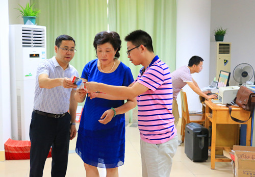 8月1日下午,学校2016年招生工作领导小组组长、副校长吴桃娥在招生与就业处负责同志陪同下,冒着炎炎烈日看望慰问了暑假期间还在持续工作的招生工作人员。