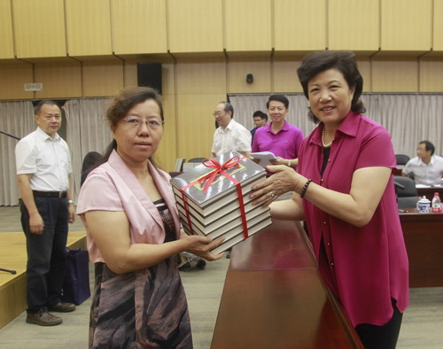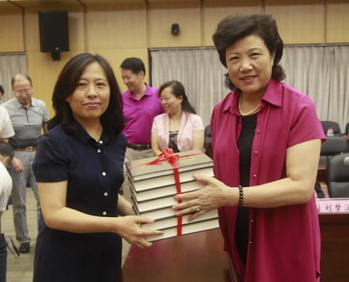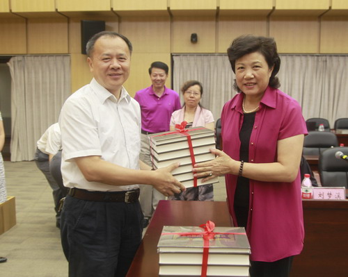首发仪式上,吴桃娥副校长代表九江学院向国家图书馆及北京大学、清华大学、中国人民大学、北京师范大学四校图书馆负责人赠送了《江西历代进士全传》系列丛书。