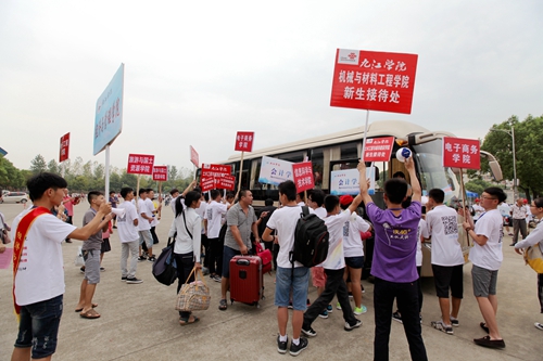为方便提前来校新生的报到,从9月3日下午开始,九江学院的迎新工作就已经开始。3日下午就有3000余名新生来校报到。9月4日,迎新工作全面展开。一大早,学校相关各部门和各院系的迎新工作人员早早来到新生报名点各就个位,等待着来自全国五湖四海的新生的到来。