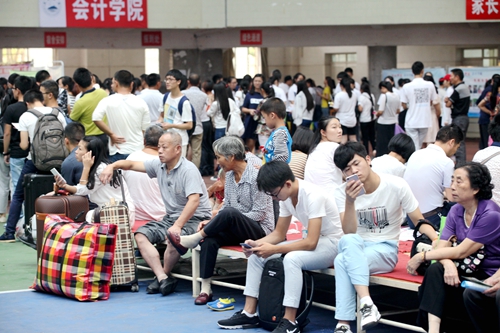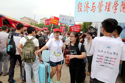 “高效、热情、服务、周到”的迎新工作 令新生及其家长感到方便和温暖,我们看到的是一张张略带倦意的脸庞以及倦意背后舒心的笑容。“我们一下车,就看到了咱们学校接站的牌子,受到热情的接待,从办理报到手续到找到学生宿舍,都是一位同学帮着给办好的,真是太方便了,服务真是太周到了!”一位从黑龙江过来的学生家长如是说。在报到现场,记者时刻都能看到师生们忙碌的身影,他们帮贫困学生咨询,给新生指路,帮助提行李,一次次奔波在报名点和学生公寓楼之间,尽管汗流浃背,但他们的脸上始终充满着灿烂的笑容。