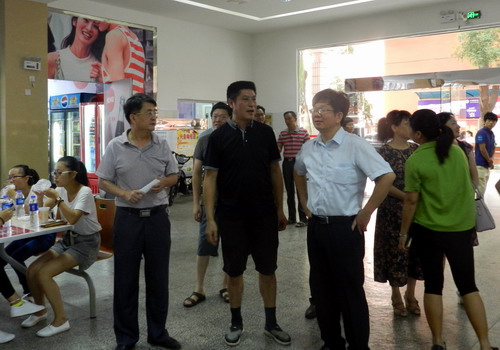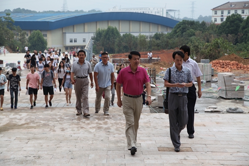 王万山副校长对浔东校区新学期的第一课教学秩序进行了检查,并实地查看了迎新现场和学生食堂。