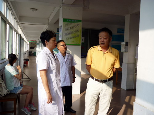 9月13日上午,杨焱林副校长在校医院院长贾宗林,副院长江满珍、钟志刚的陪同下检查指导2016级新生复查体检工作。