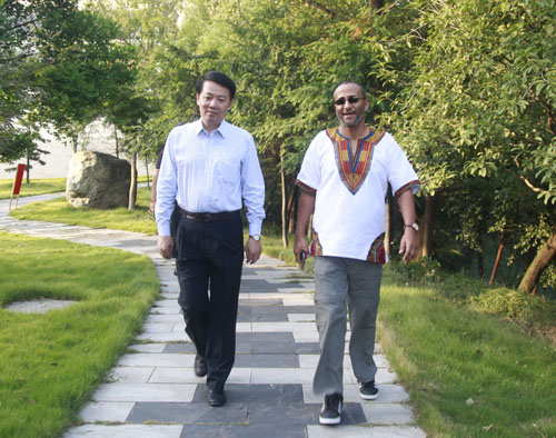 报告会结束后,在校党委书记郑翔,副校长杨耀防的陪同下,与会的中外专家、学者到两南山参观了陶渊明研究院和陈寅恪研究院。
