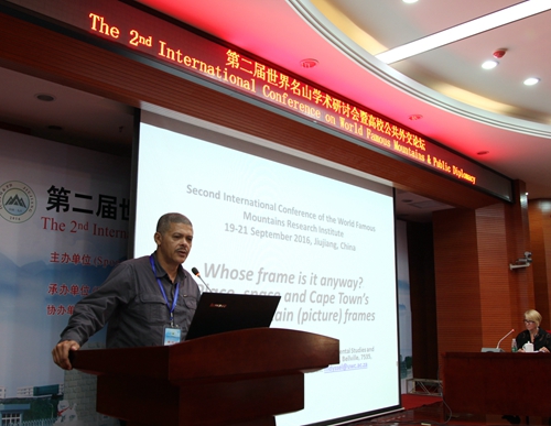研讨会上,德国欧洲森林艺术协会组织者和发起者乌特女士、法国巴黎第三大学韦遨宇教授、菲律宾圣名大学副校长那罗教授、南非西开普敦大学迈克尔教授、中国江西师范大学地理与环境学院副院长钟业喜教授、中国乐山师范学院四川旅游发展研究中心干鸣丰研究员,世界名山协会非洲副秘书长、南非国家公园负责人盖瑞先生,世界名山协会南美洲副秘书长、塞阿拉州联邦大学教授莫妮卡女士,中国台湾静宜大学王友民教授,中国江西南昌大学经济管理学院龚志强教授,中国九江学院药学与生命科学学院副院长鲍海鸥,日本山梨学院大学熊达云教授,世界名山协会大洋洲副秘书长杨娜女士,罗马尼亚欧洲山脉协会会长米哈尔.安德烈先生,摩尔多瓦自由国际大学国际处副处长拉杜先生,中国黄山学院旅游学院 朱国兴院长,中国九江学院旅游学院院长李松志教授,美国阿姆斯特朗大西洋州立大学地质旅游系助理教授艾米,波特,日本大和高田友好协会秘书长小和田,泰国清迈大学语言学院马如宝教授,中国江西财经大学江西旅游发展研究中心副主任曹国新教授,中国九江学院旅游学院副院长孙冬英教授等23位中外专家学者围绕“世界名山研究”主题作了精彩的报告。他们在报告中提出了一些新概念、新观点、新看法,富有新意、启人深思。